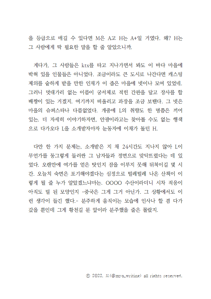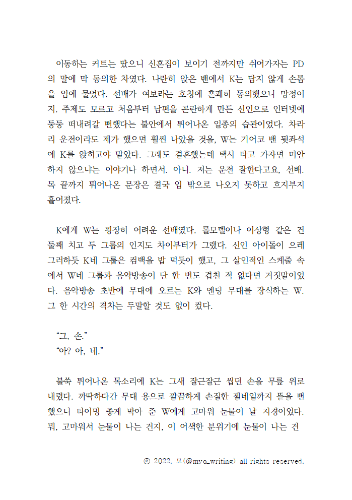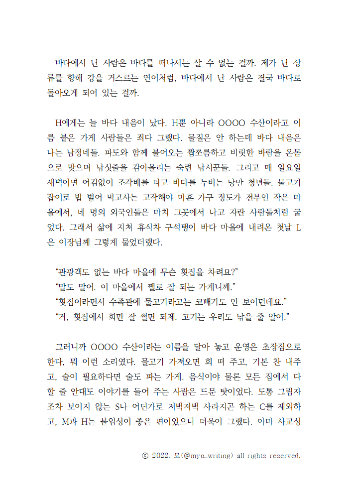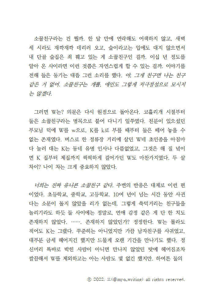 글의 저작권은 묘 (@myo_writing)에게 있으며, 완성본은 pdf 형식으로 전송됩니다.